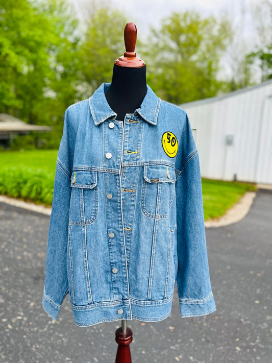 Vintage Vibes XXL Denim Jacket – “Take the Time to Smile!”