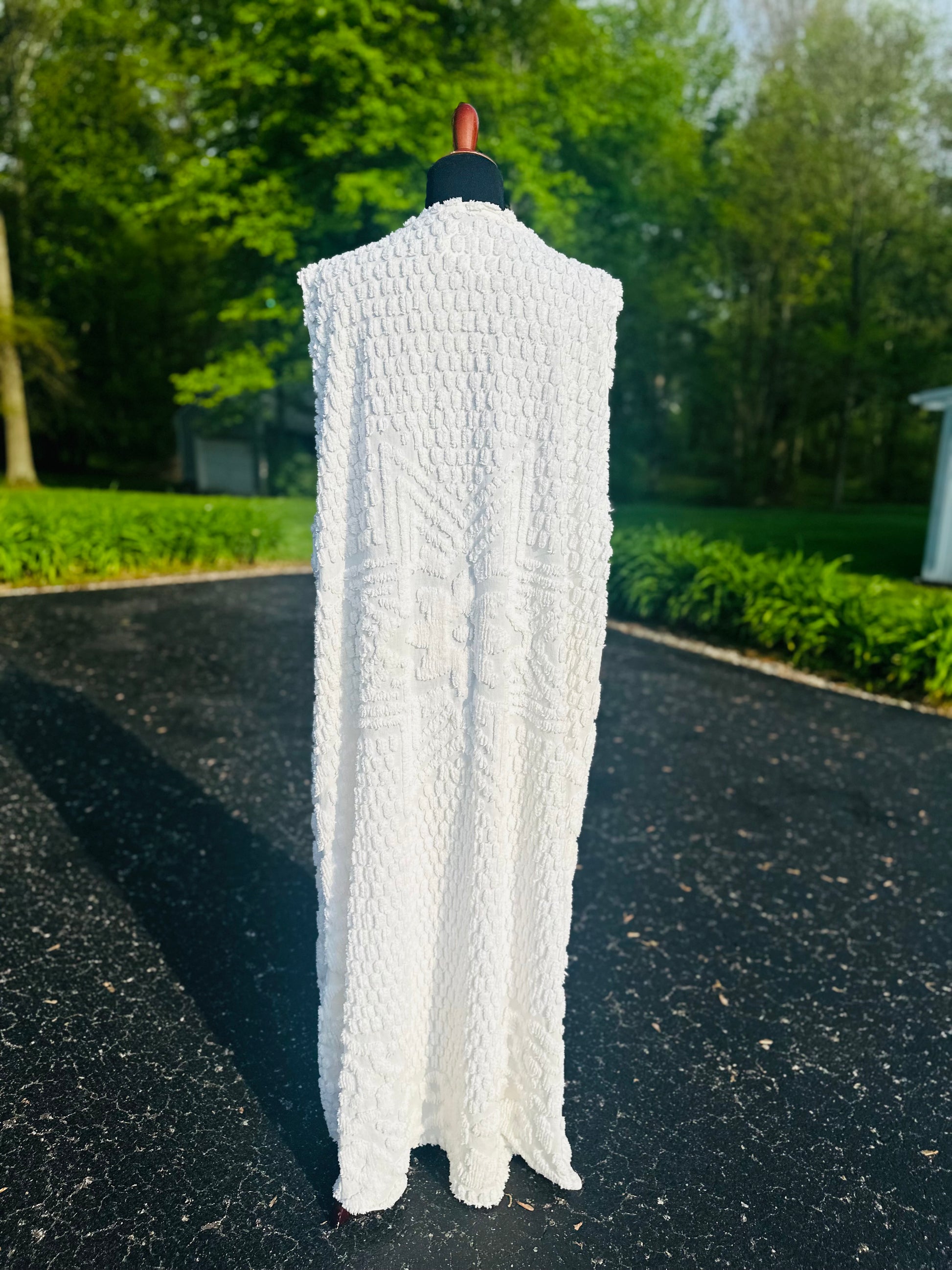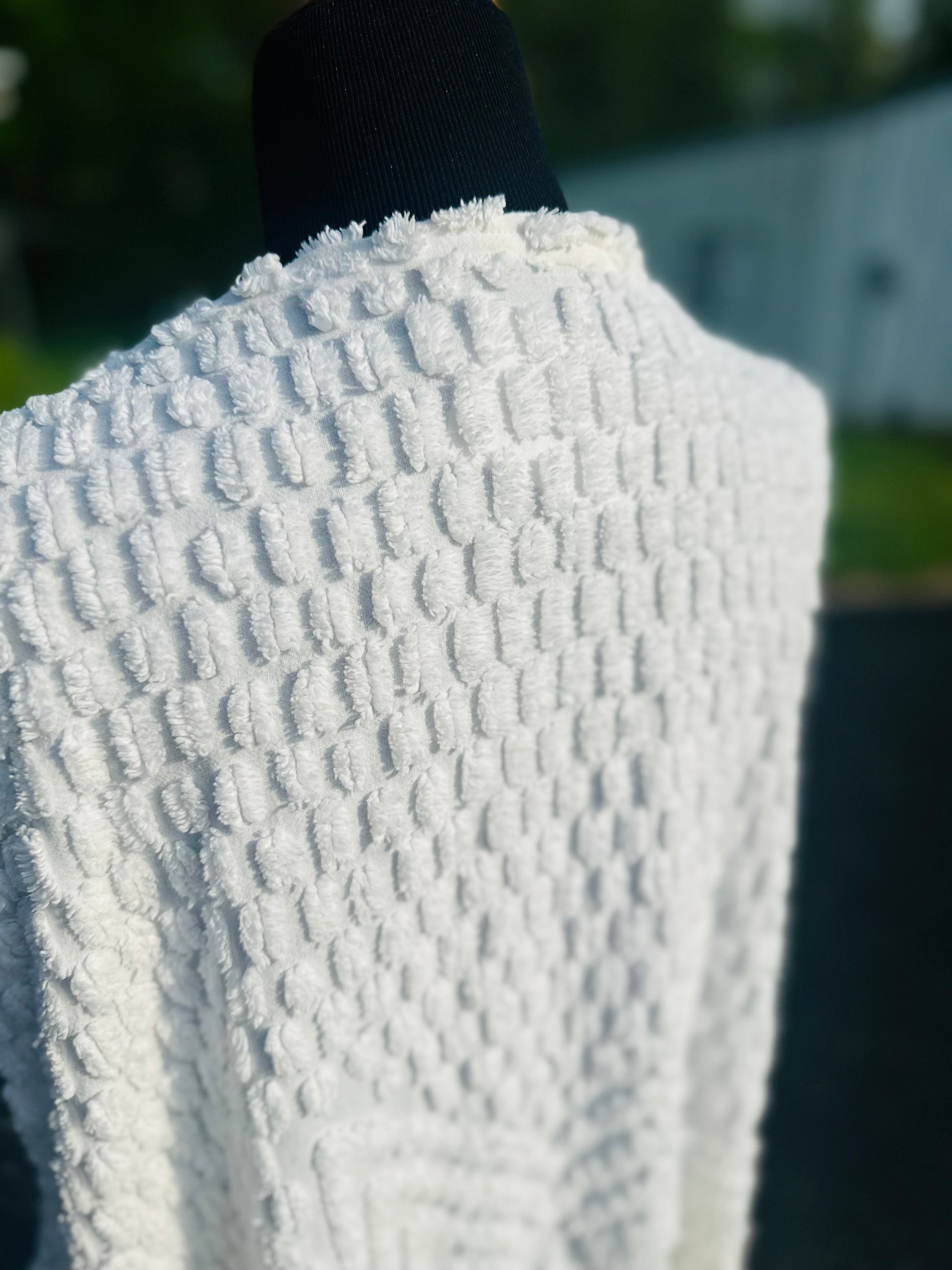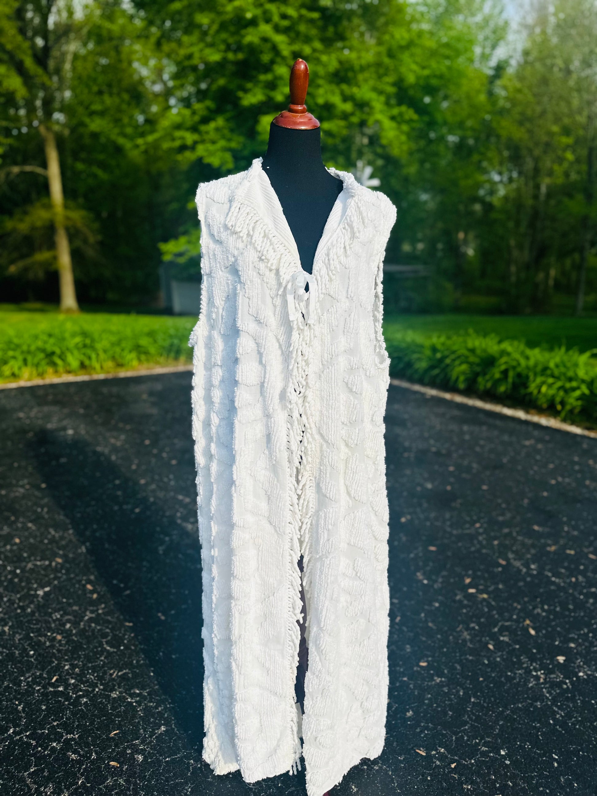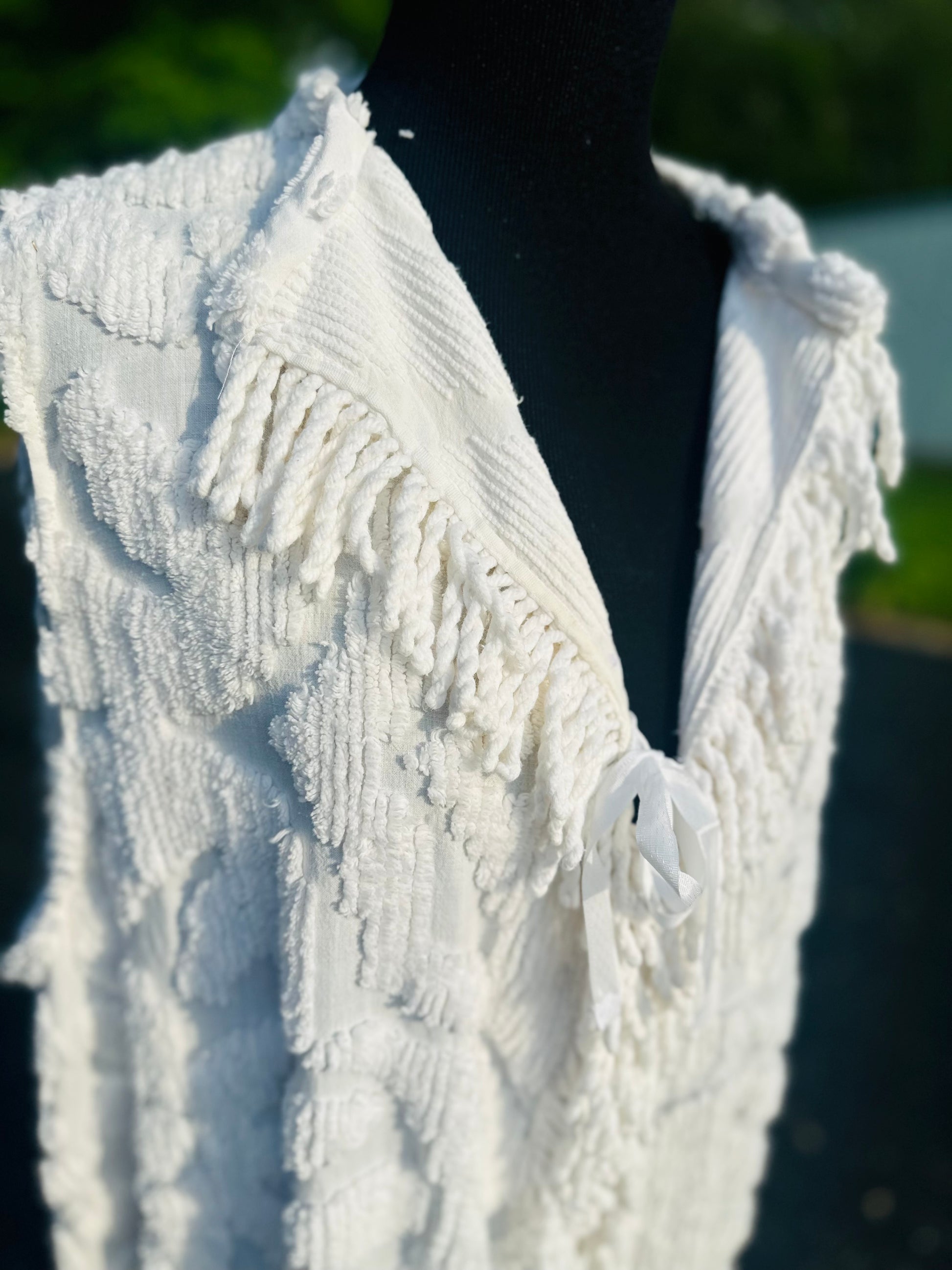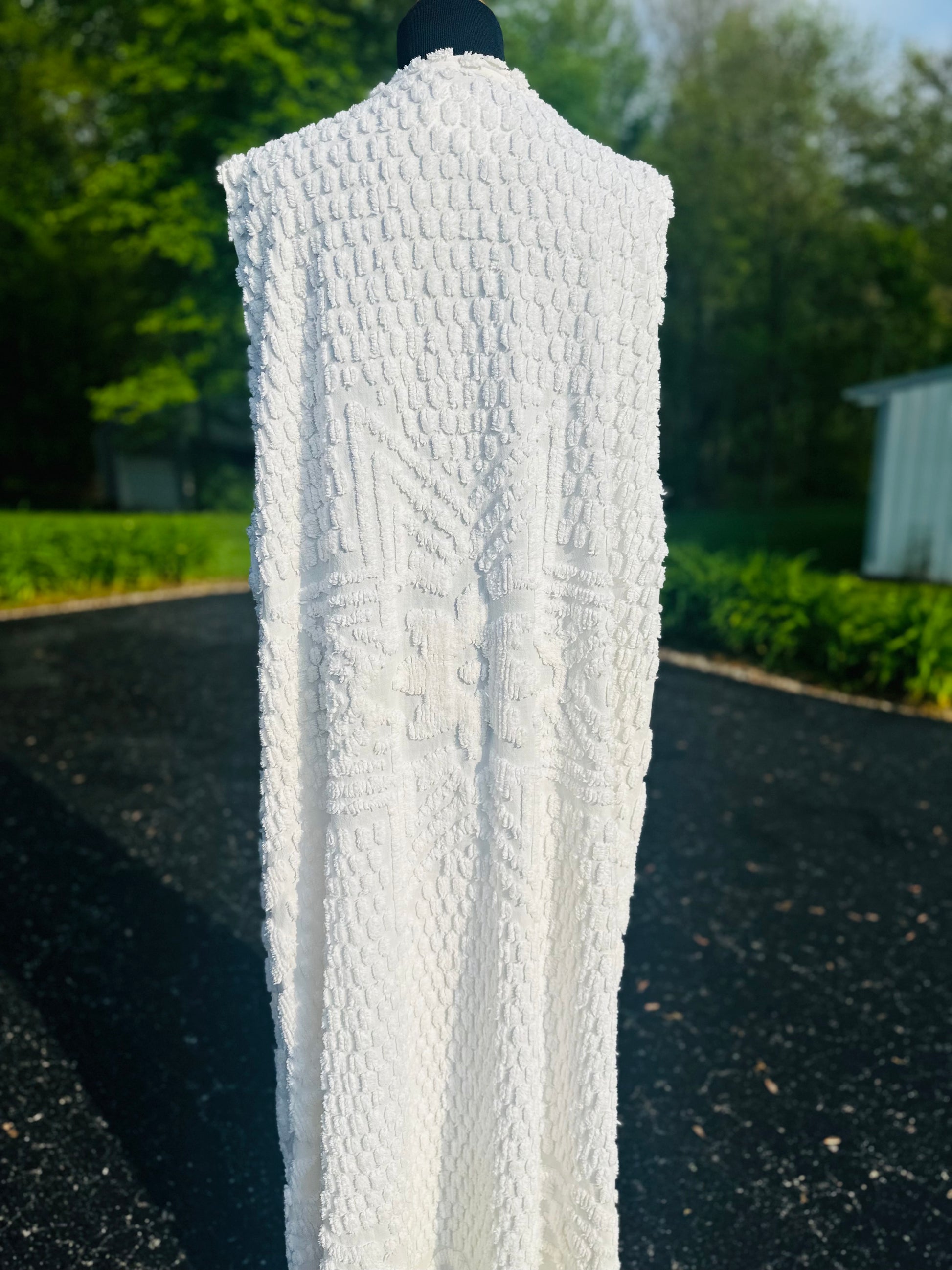 Cloudspun Chenille Duster – Upcycled White Vintage Bedspread Vest – Size Large to 2XL