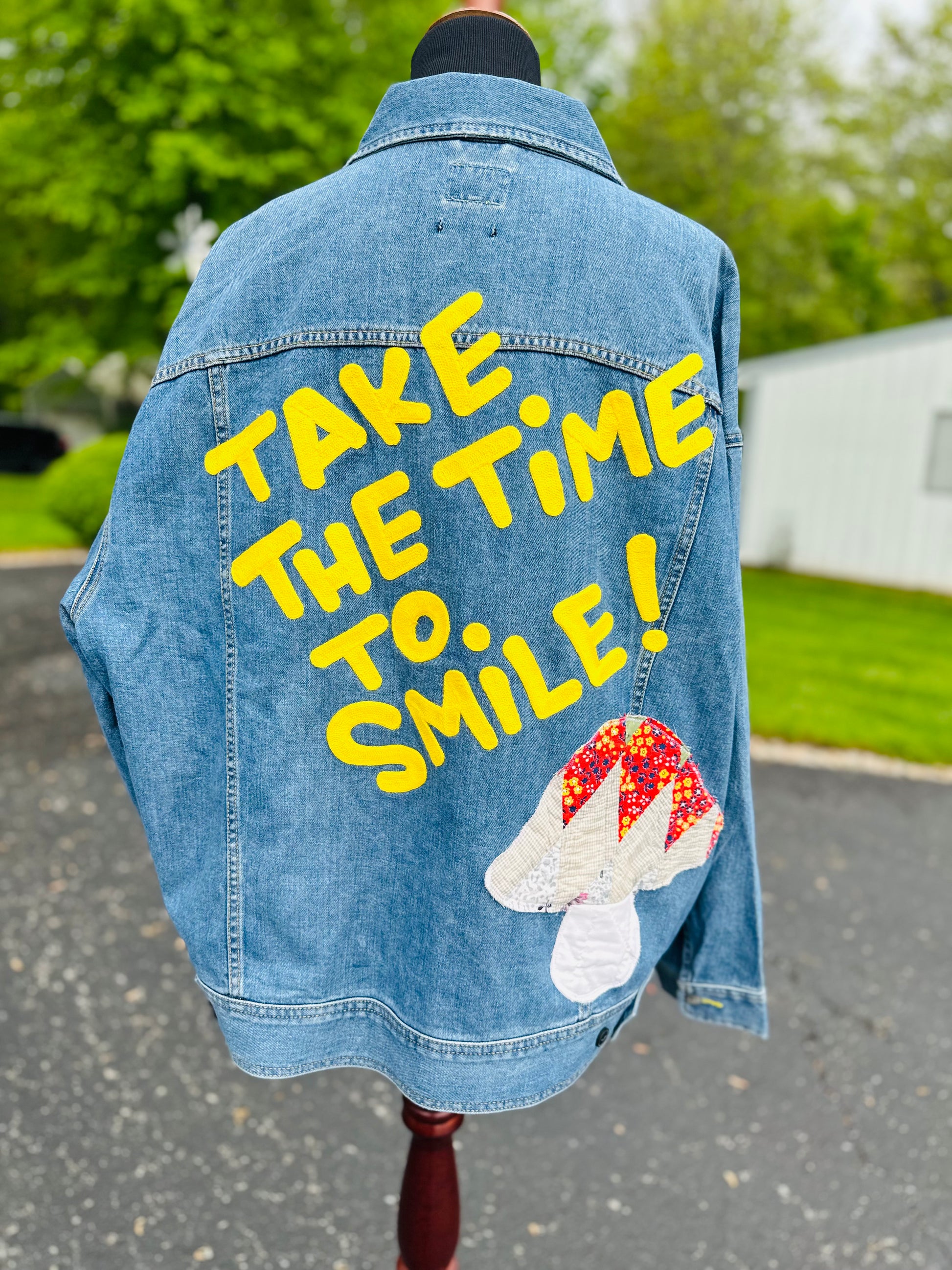 Vintage Vibes XXL Denim Jacket – “Take the Time to Smile!”